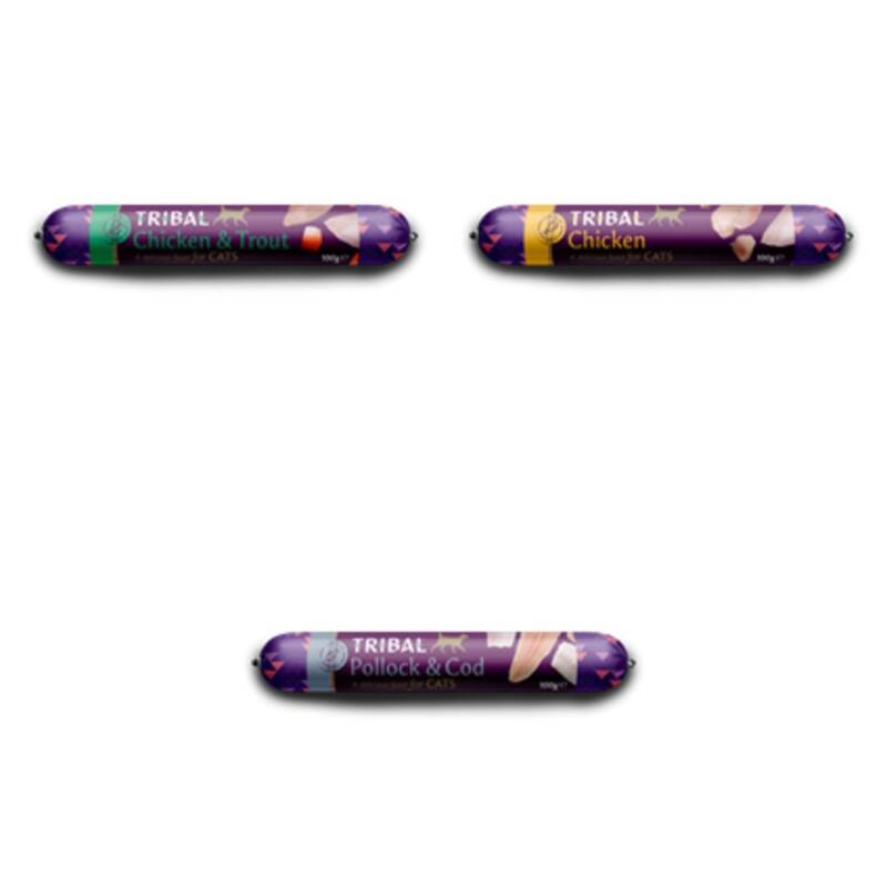A grain free & natural, complete cat food with fresh meat and fish specifically developed for cats of all ages. Our sausages are 100% complete, meaning that even the fussiest of cats enjoy each and every meal. However you serve it, sliced into a bowl or mashed up into a licky mat, cats love the texture and taste and will thank you for it!