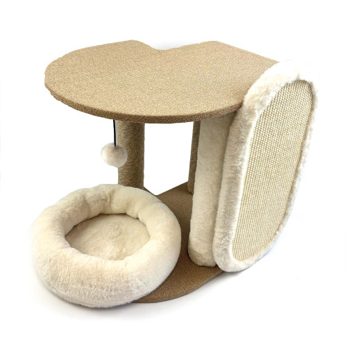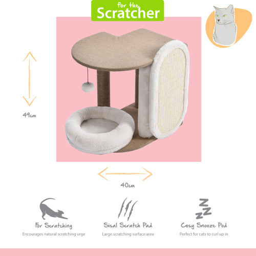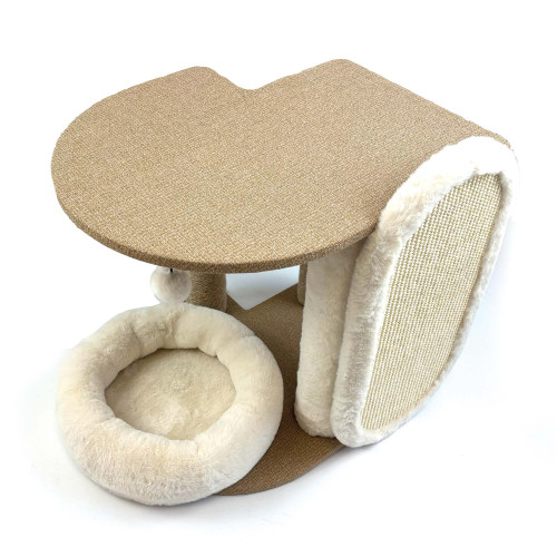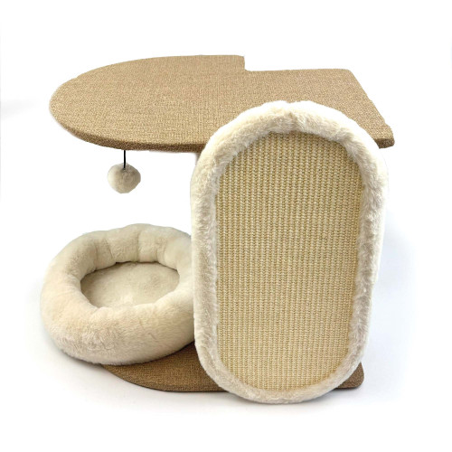 Featuring a sturdy scratch pad and a comfy bed, this corner scratcher provides a special spot for your cat to stretch, scratch, and relax. Its snug fit keeps your walls and upholstery free from claw marks while offering your cat a cozy corner to unwind. With its modern design, it seamlessly blends into your home, combining practicality with style.