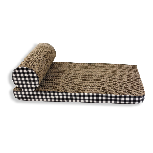 Designed like a chic chaise longue, it provides a cosy place to relax while meeting your cat’s instinct to scratch. Made from sturdy corrugated cardboard and featuring a sleek black check pattern on the sides, it complements modern decor and helps keep your furniture safe from claws.