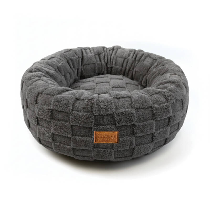 Happy Pet Checkra Round Pet Bed – Graphite Grey