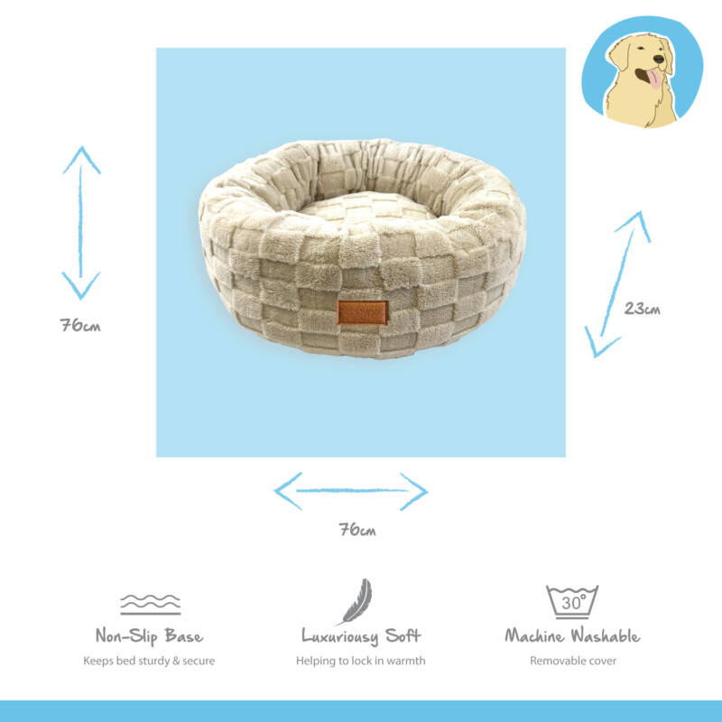 Happy Pet Checkra Round Pet Bed – Latte