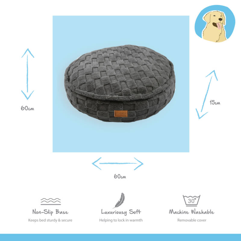 This round plush pet cushion provides a cosy, nest-like spot for your pet to relax in comfort and style anywhere in your home.
